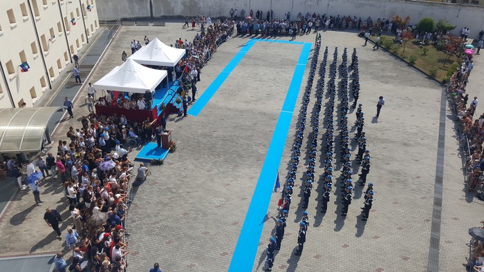 impassibili sotto il sole e incuranti del caldo afoso, hanno giurato fedeltà alla Repubblica. Sono gli allievi del 173° corso per agenti di polizia penitenziaria che s’è formalmente chiuso oggi nella scuola “Salvatore Rap” di Pallanza con la consueta cerimonia aperta al pubblico e ai familiari dei neoagenti. In tanti, da tutta Italia, sono giunti sul Verbano per suggellare il percorso formativo che in un semestre li ha portati ad entrare nell’amministrazione della giustizia come guardie carcerarie. Sotto lo sguardo della direttrice Liliana Chiarlone e del provveditore regionale Liberato Guerriero, il comandante della scuola, commissario capo Marco Mostacciuolo, ha guidato il plotone che s’è schierato sulle note dell’Ente musicale Città di Verbania e che ha atteso il fatidico momento del giuramento, il “lo giuro” gridato all’unisono, preludio al rompete le righe con il classico lancio al cielo dei baschi azzurri. Presenti le massime autorità militari e civili della provincia.